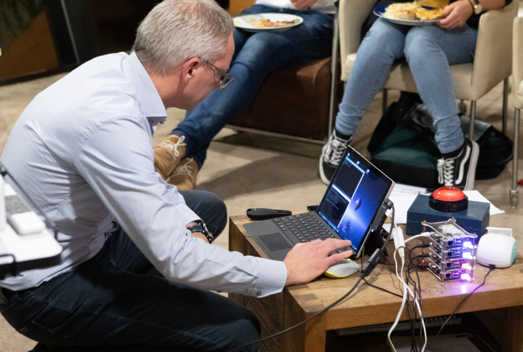 Klinkt misschien als een ingewikkeld verhaal, maar aan de hand van een live demo met vier Raspberry Pi’s, een printertje en een aantal random tweets van de aanwezigen, liet Mark op kleine schaal zien hoe deze complete architectuur werkt. Inclusief een paar microservices, publish-subscribe via Kafka en een mini Data Lake waarin real-time data wordt verzameld.