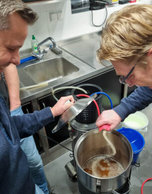 Bij New Nexus hechten we veel waarde aan gezelligheid en genieten van een goed biertje. Zo opperden in 2020 een aantal collega’s het idee om een eigen bierbrouwclub te starten. Na succesvolle brouwsessies bij collega Frits Kelling thuis met zijn eigen brouwmateriaal, besloten ze om grotere apparatuur en meer grondstoffen aan te schaffen. Hun doel: het verder ontdekken en verfijnen van hun brouwambacht.