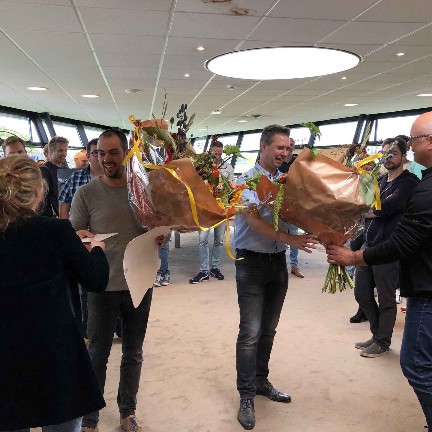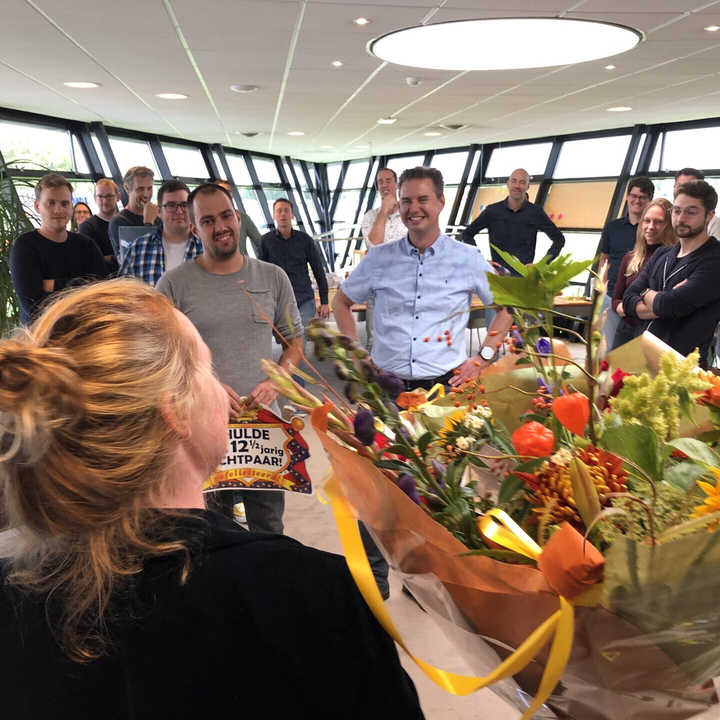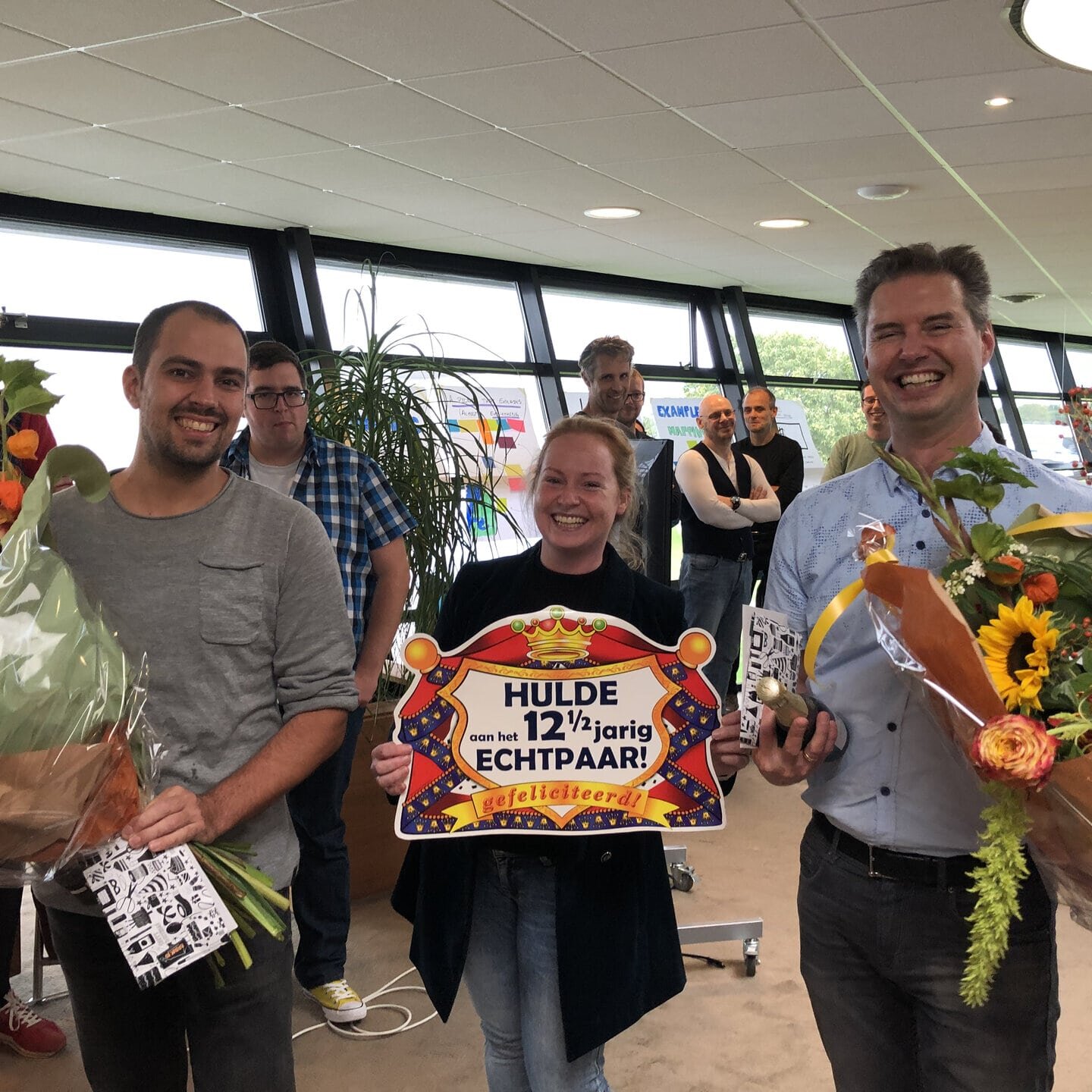 Hulde aan Jacco Kamminga en Rik Carton: de eerste twee New Nexus collega’s die 1 oktober hun 12,5 jarig werkjubileum bij New Nexus vierden! Jacco is ontwikkelaar en maakte in deze periode binnen New Nexus de overstap van IT naar Mobile Solutions. Rik begon als ontwikkelaar en is nu functioneel ontwerper. Hij zat net midden in een training Domain Driven Design toen de beide mannen werden verrast. Van harte gefeliciteerd!