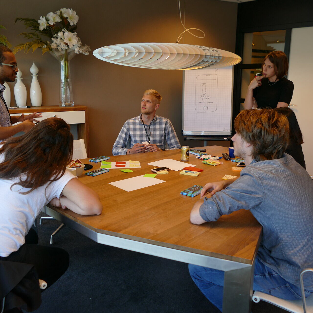 De deelnemers kregen een case voorgelegd om met behulp van design thinking een oplossing te verzinnen voor het verder verkleinen van onze ecologische footprint. Dit leverde de meest leuke en uiteenlopende ideeën op. Zoals een motiverende app met competitie-elementen tussen medewerkers en bedrijfsonderdelen om bijvoorbeeld het aantal reiskilometers te verlagen. Of het verzamelen van plastic afval en verpakkingen om daar vervolgens telefoonhoesjes van te maken en deze als relatiegeschenk weg te geven. Maar ook het vormen van een lokaal netwerk van organisaties die, door het uitwisselen van best practices of spullen, elkaar kunnen helpen om duurzamer te worden. Onze experience designers Lisa Kremer en Dyon Hoekstra hielpen de studenten hierbij op weg. Zij passen deze werkwijze dagelijks toe bij de ontwikkeling van mobile solutions voor klanten.