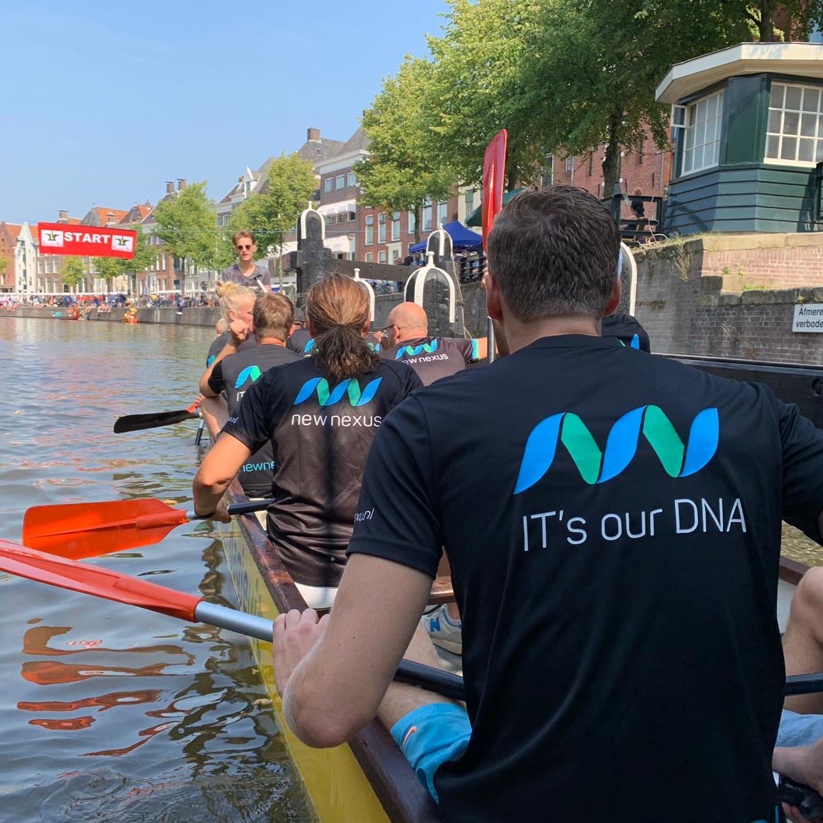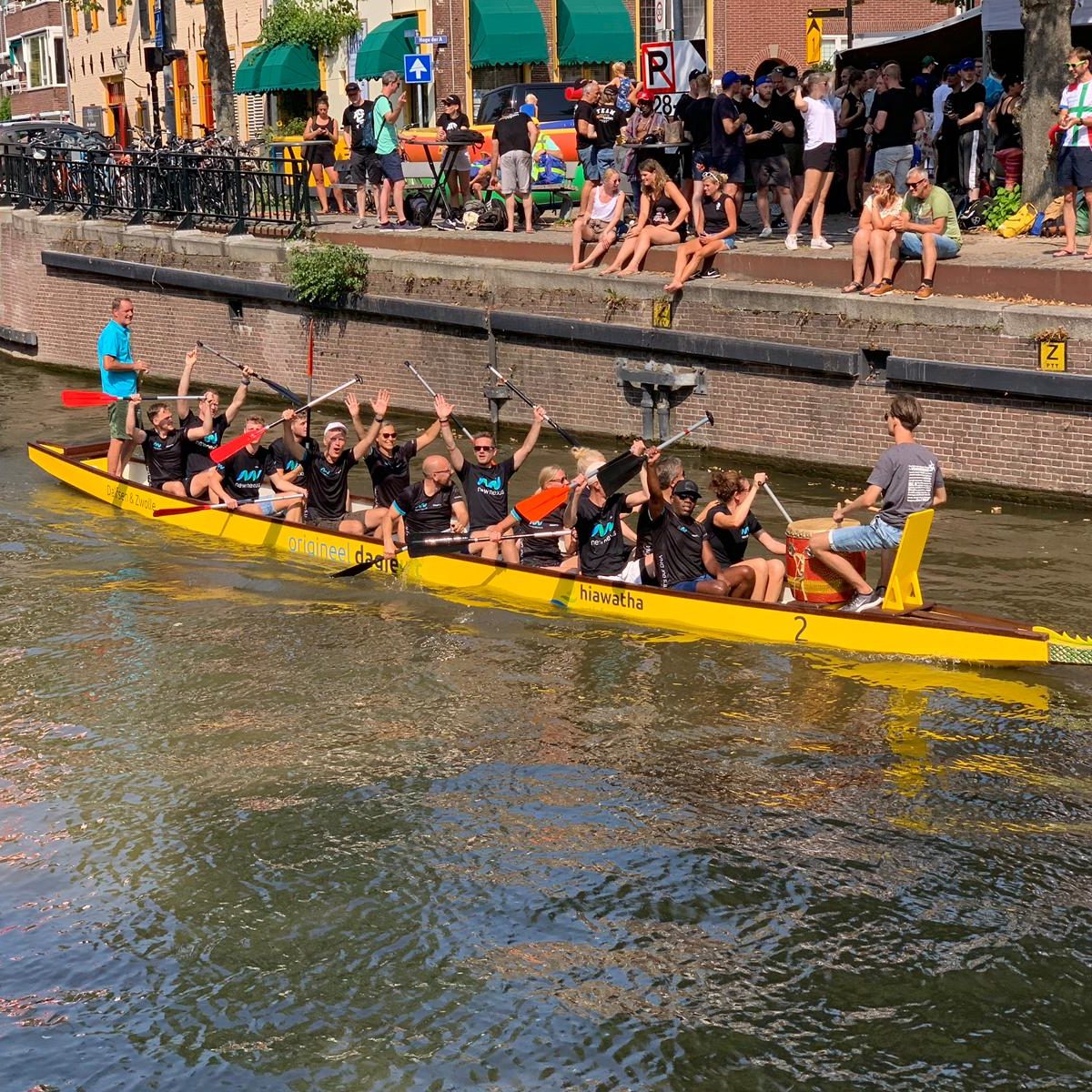Een jaarlijks terugkerend onderdeel tijdens het Groningens Ontzet of Bommen Berend, is de Drakenbootrace op de A tussen de brugstraat en de vissersbrug. Hierbij strijden bedrijventeams van 14 personen in een houten roeiboot om de snelste tijd over 500 meter. Een groep collega’s van New Nexus deed dit jaar voor de derde keer mee en mocht zich na zeven heel intensieve sprints de winnaar noemen. Ondanks de hitte, de onvermijdelijke vermoeidheid en vooral verzuring bleef de teamspirit overeind!