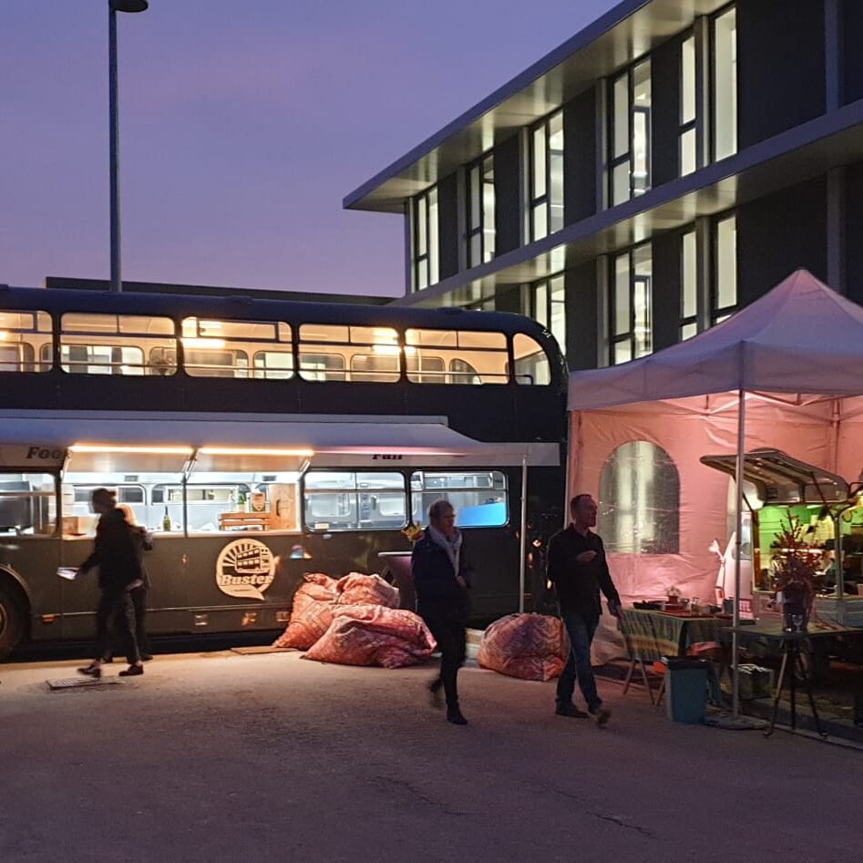 Buster, onze gerestaureerde Engelse dubbeldekker, kan eindelijk zijn rol vervullen als foodtruck en daarmee vooral als leerwerkplek. De foodtruck staat voor food, fun, fair: goed eten in een bijzondere setting, die mensen met een afstand tot de arbeidsmarkt een eerlijke kans biedt.