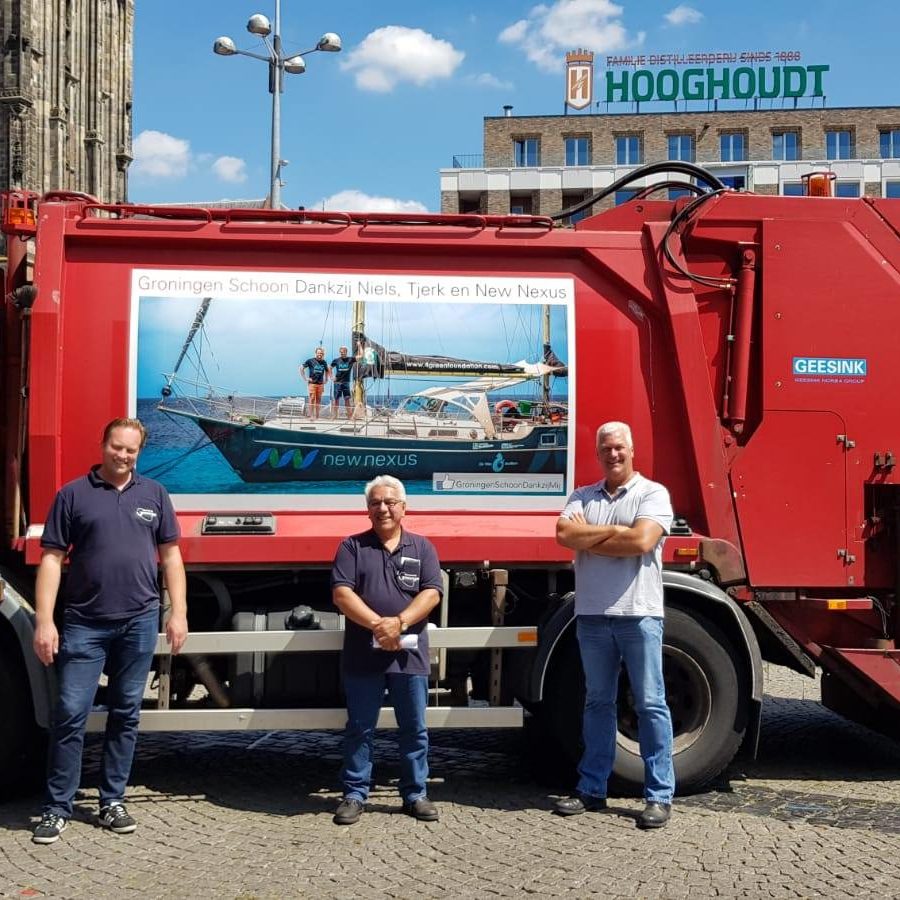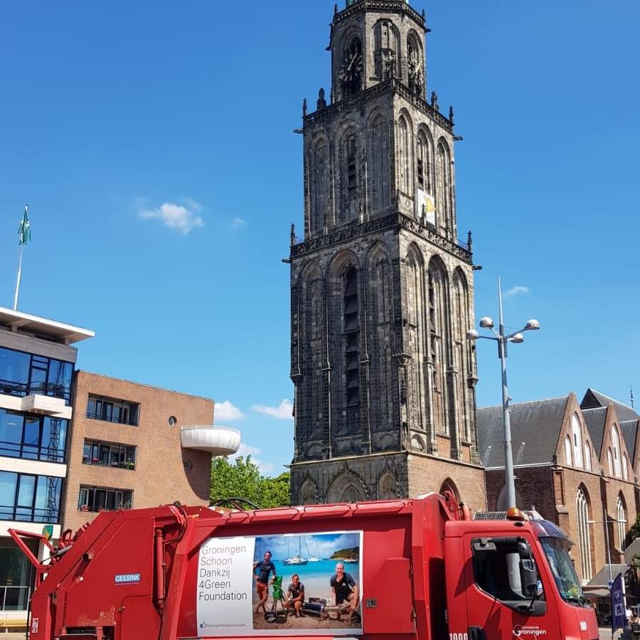 Heb jij ons al zien rijden door de stad Groningen? Ter ere van de samenwerking tussen de 4GreenFoundation en Groningen Schoon Dankzij Mij rijdt er deze zomer een vuilniswagen met een foto van Niels Tammeling en Tjerk Zweers op de New Nexus door Groningen.