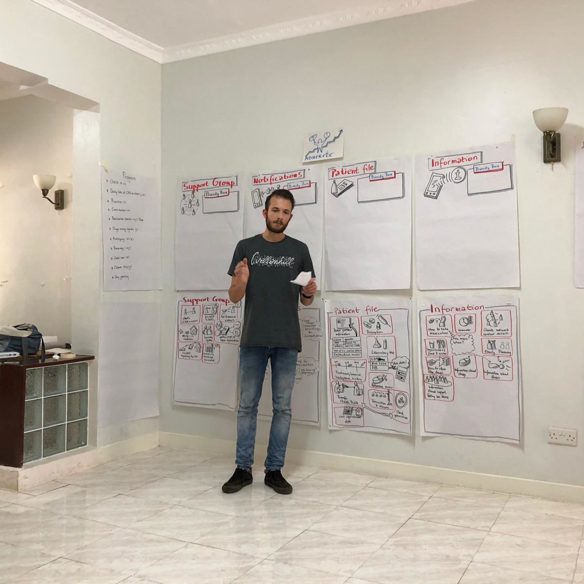 Tijdens het eerste bezoek in januari 2019 gingen 6 collega’s naar Kenia. Samen met de betrokken partijen hebben ze toen een analyse gemaakt van het probleem, mogelijke oplossingen bedacht, ontwerpen gemaakt en een tijdsplanning opgesteld. In de tussenliggende periode is op afstand samengewerkt om de AdherenceApp te bouwen.
