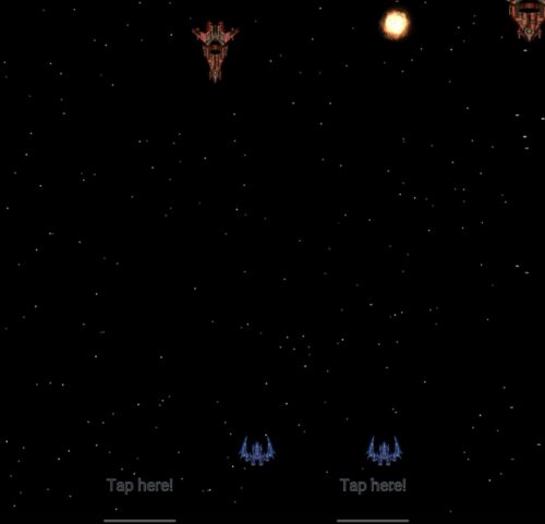 Nu kon ik de kennis uit de cursus gebruiken om niet in een HTML-canvas maar met SkiaSharp een game te maken. Ik begon te experimenteren met een shooter-game in de vorm van een ruimteschip die met touch controls te bewegen was, voegde bewegende sterren op de achtergrond toe en een enemy met wat animaties.