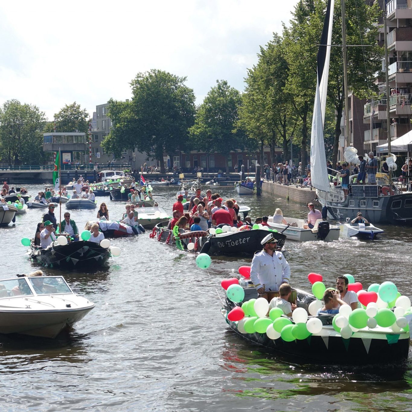 Nadat ze op 27 augustus om 10.00 uur zijn uitgezwaaid in Garnwerd, zijn ze via de Dorkwerdersluis en het Reitdiep, wat de afgelopen vier jaar hun thuishaven is geweest, naar Groningen gevaren om vervolgens aan te meren in de Zuiderhaven om afscheid te nemen van de stad. Een feestelijk afscheid, want om 14.00 uur startte de Grachtenparade, onderdeel van de vijfde editie van het Grachtenfestijn. Ruim 100 boten, waarvan een deel vaart op duurzame energie (o.a. waterstof en zonne-energie) passeerden de zeilboot van Niels en Tjerk.